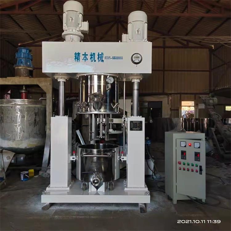 雙行星攪拌機(jī)根據(jù)行星運(yùn)動軌跡設(shè)計,攪拌結(jié)構(gòu)有低速攪拌器、高速攪拌器、以及相應(yīng)的刮板裝置組合而成。雙行星攪拌機(jī)的雙組低速攪拌器自轉(zhuǎn)的同時繞著軸心進(jìn)行公轉(zhuǎn),而且低速攪拌器的形式根據(jù)不同的物料粘度和生產(chǎn)工藝選擇不同的攪拌形式,常見的攪拌形式包括槳葉式、麻花式、爪式、框式等結(jié)構(gòu),具備良好的混合、反應(yīng)、捏合、溶解的作用;高速分散器由多層具備極高線速度的鋸齒狀分散盤組成,它同樣在高速自轉(zhuǎn)的同時繞著軸心進(jìn)行公轉(zhuǎn),能夠?qū)⒎哿希ㄖ鷦┛焖俚姆稚⒌綕{料里,具備很強(qiáng)的分散作用;刮板裝置根據(jù)客戶實際的生產(chǎn)工況選配。